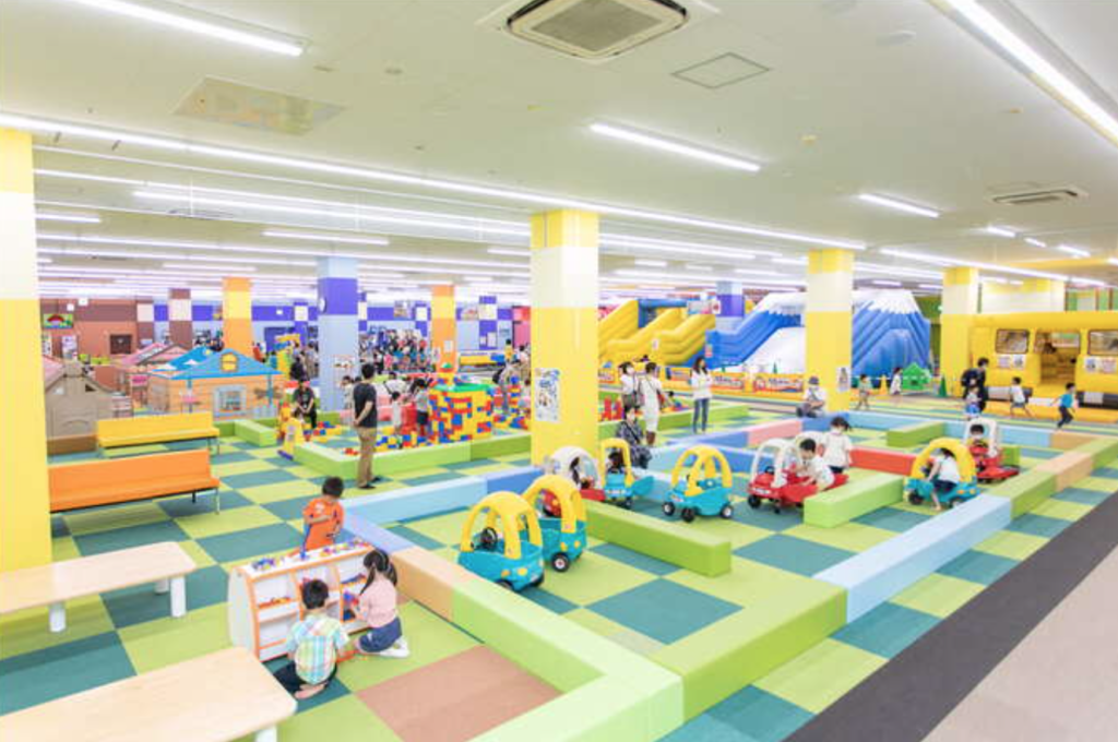 • 屋内型アミューズメント施設やキッズスペースがあり、雨の日も子どもが遊べる。