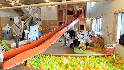 • 乳幼児から小学生まで利用できる屋内遊び場。滑り台やボールプール、絵本コーナーなどがある。
