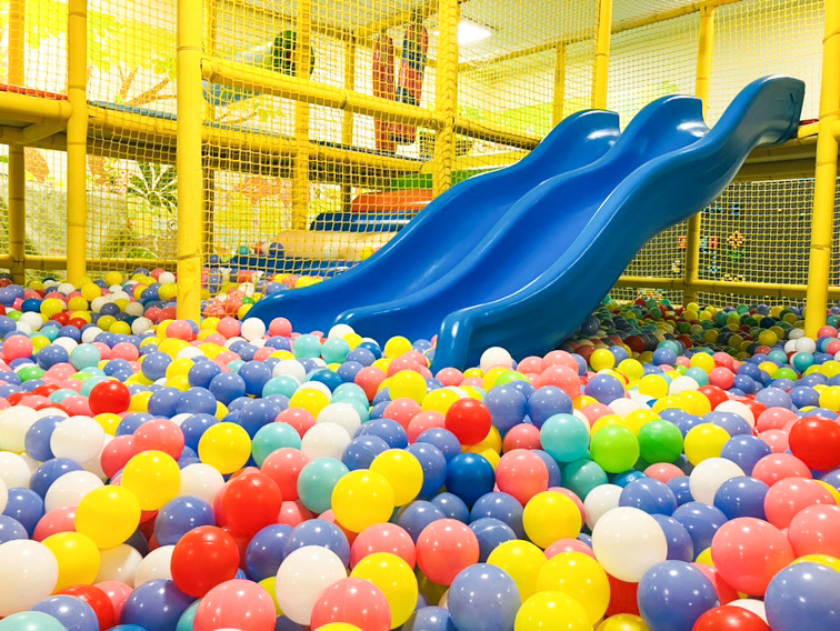 • 雨でも安心の大型屋内遊園地。ふわふわ遊具やボールプールなどが豊富で、0〜12歳の子どもが1日中遊べる。